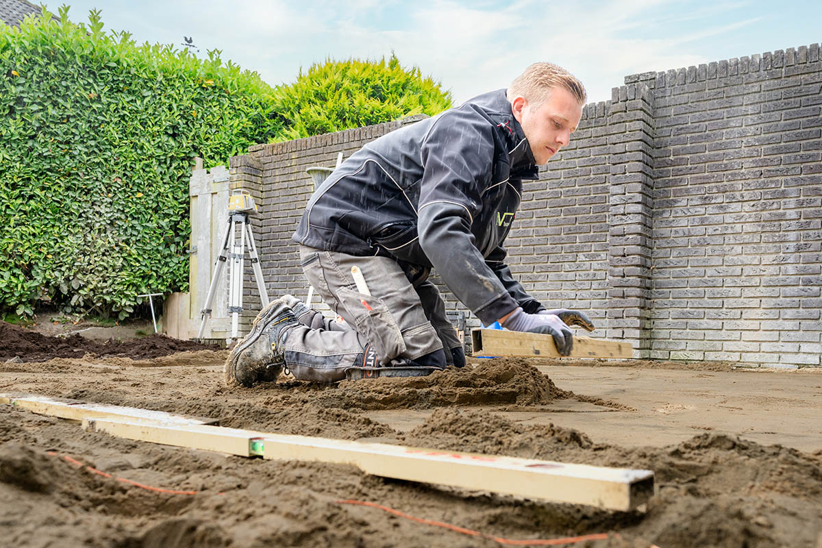 Voor graafwerk rondom leidingen of hoogteverschillen maken we gebruik van een laserwaterpas, zodat alles exact op niveau ligt. Ook denken we actief met je mee over hoe hoogteverschillen functioneel of esthetisch kunnen worden benut in het ontwerp.